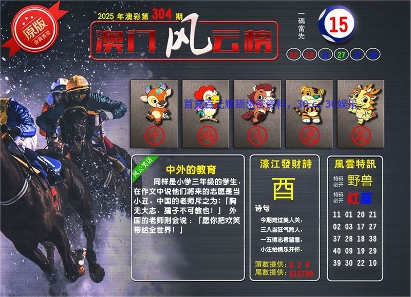 | 306期:两波⑧码☯开:牛17中 【绿波:05.06.17.21】 【红波:13.18.29.30】 |